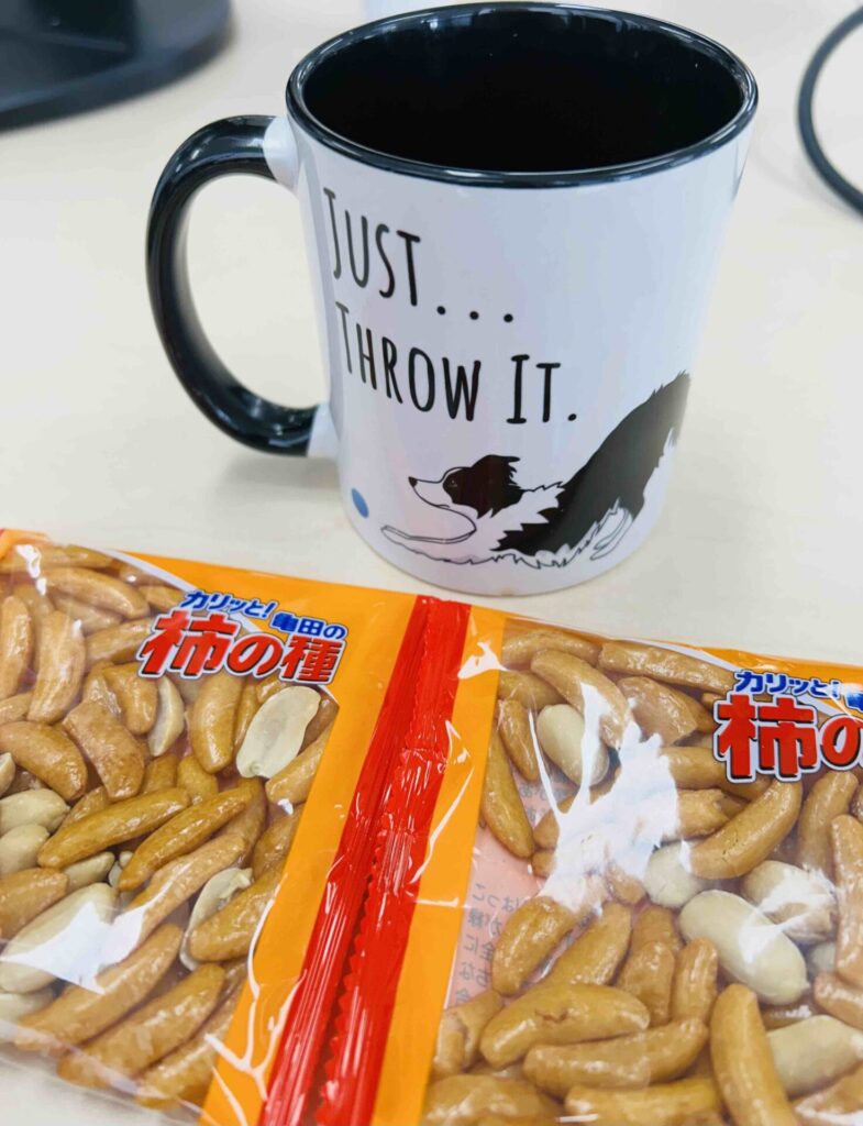 日本からお持ちになった「柿の種」を、「これ、非常食として持ってきたんですが、よろしければどうぞ!」と、久しぶりに見る柿の種に、思わず私もスマイルでした!