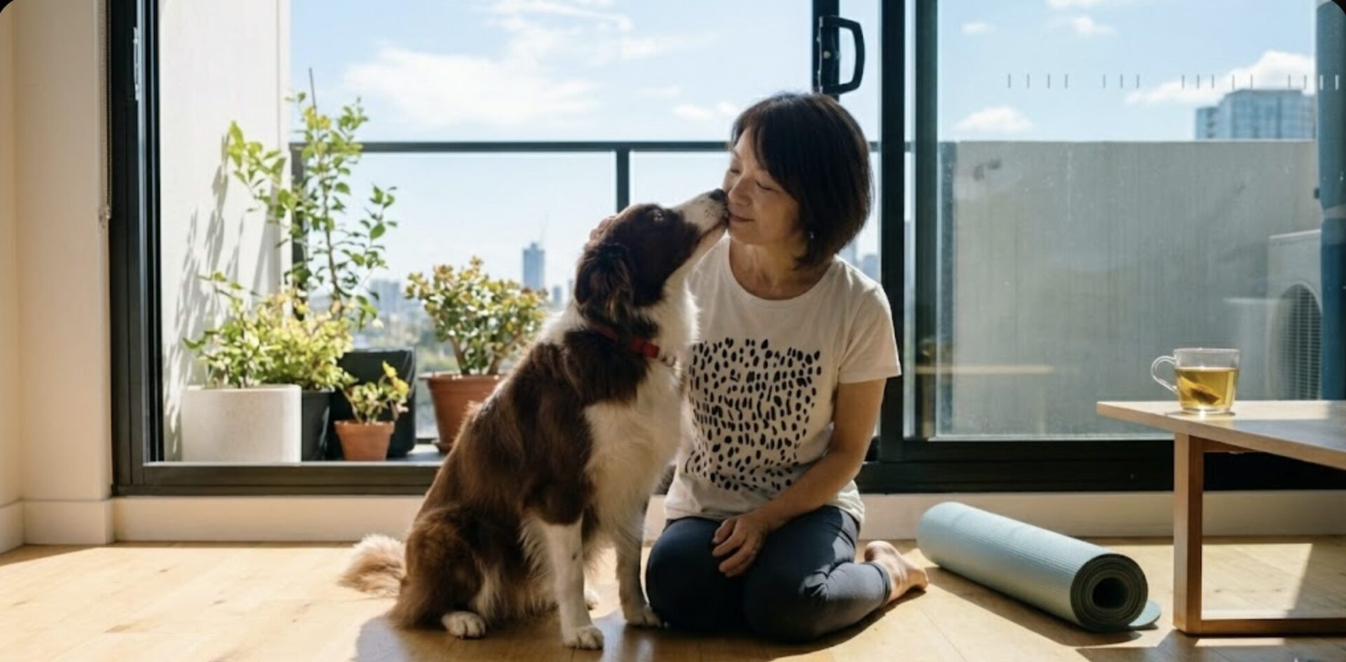 お気に入りのマグカップには、ボーダーコリーの絵が描かれています。すると彼女も犬好きらしく、